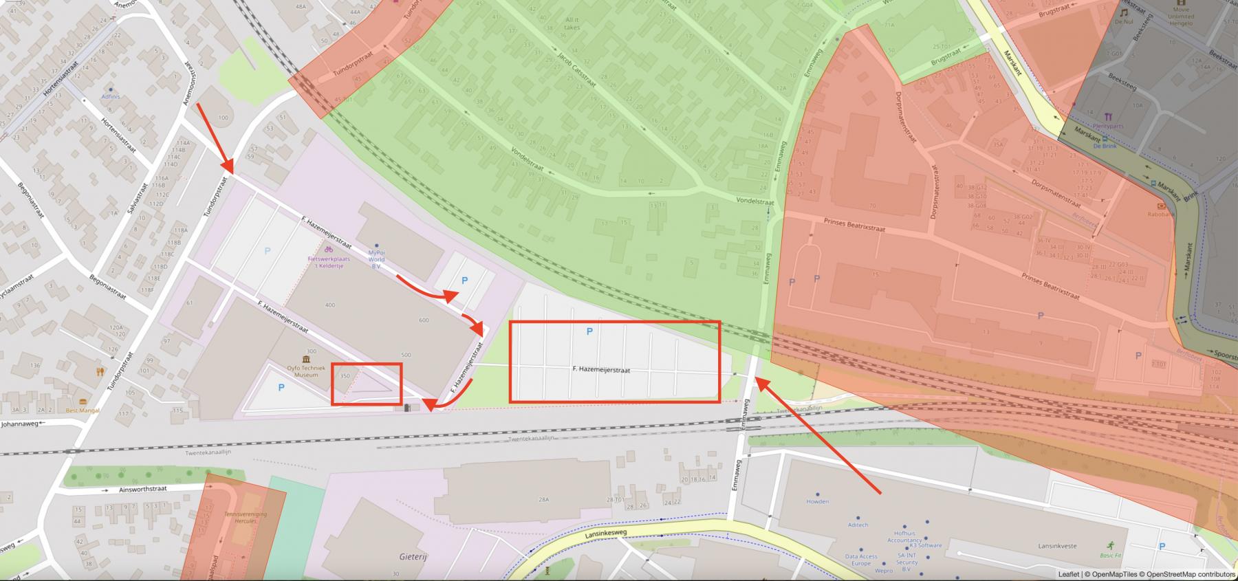 Parkeren kan NIET via de Emmaweg, maar gewoon op je navigatie Hazemeijerstraat 350 Hengelo intoetsen. Jouw navigatie stuurt je automatisch via de Tuindorpstraat het Hazemeijer Complex op, rijd helemaal door tot P3 waar genoeg ruimte is om gratis te parkeren. Dan wandel je naar Lust: 50 meter. Zie foto's ↓